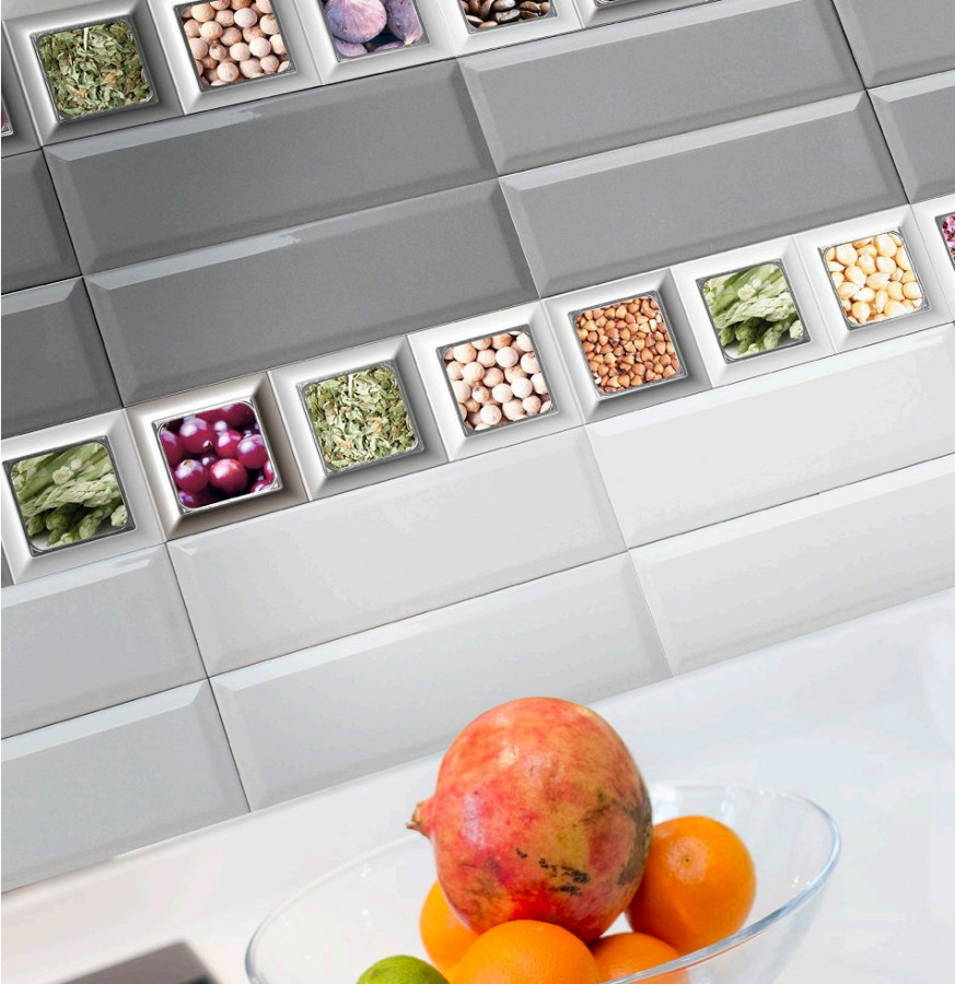 Керамическая плитка 10x10 9мм Cube Kitchen Biselado Brillo Crema глянцевая бежевый Absolut Keramika