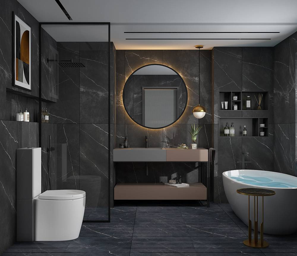 Керамогранит 120x60 10мм Venato BHB-3002 Grey Grains Mould R11 матовая черный Basconi Home