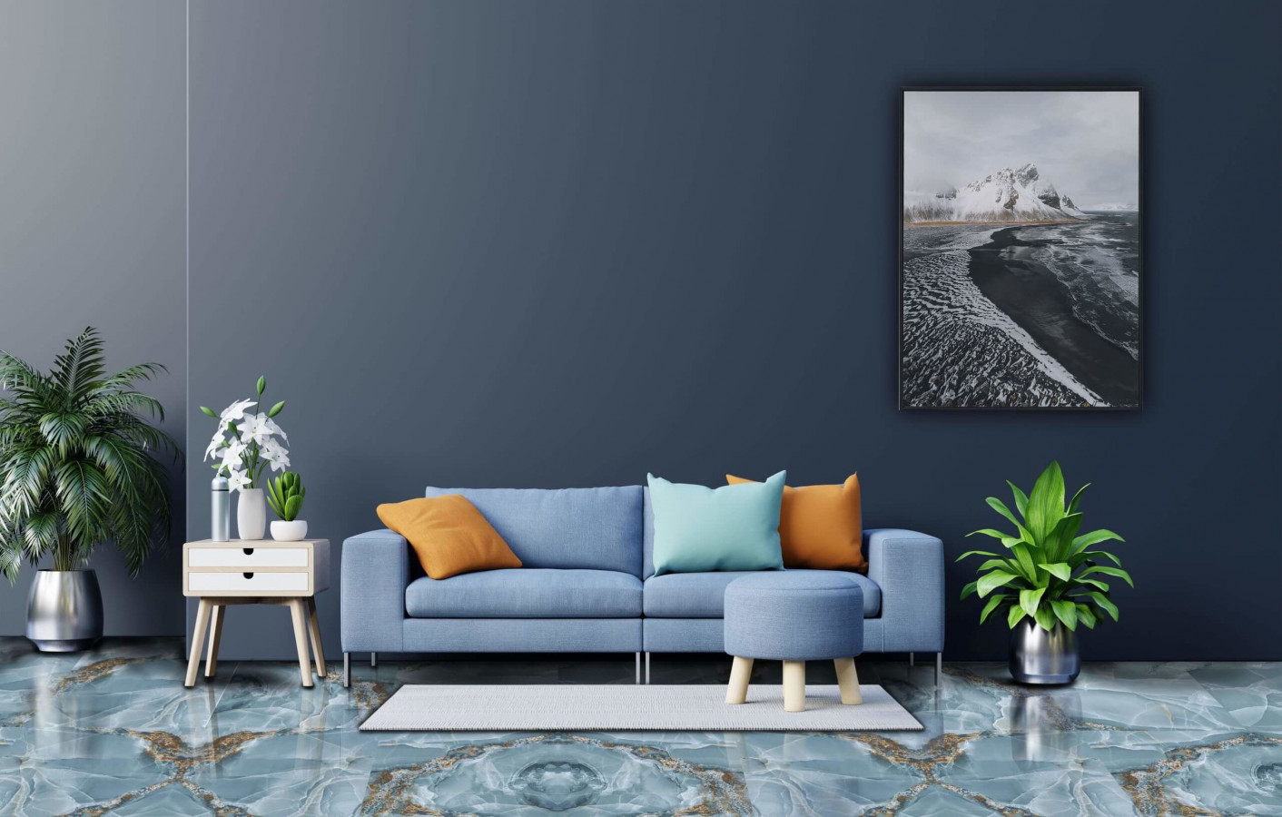 Керамогранит 120x60 Onyx Blue High Glos См 9мм супер глянец голубой A-Ceramica