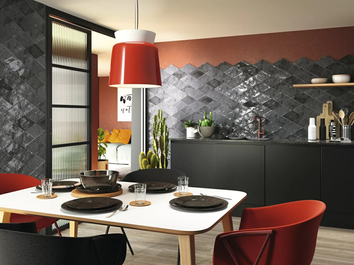 Керамическая плитка 26x15 8мм Snap A034382 Rombo Graphite глянцевая черный Ape Ceramica