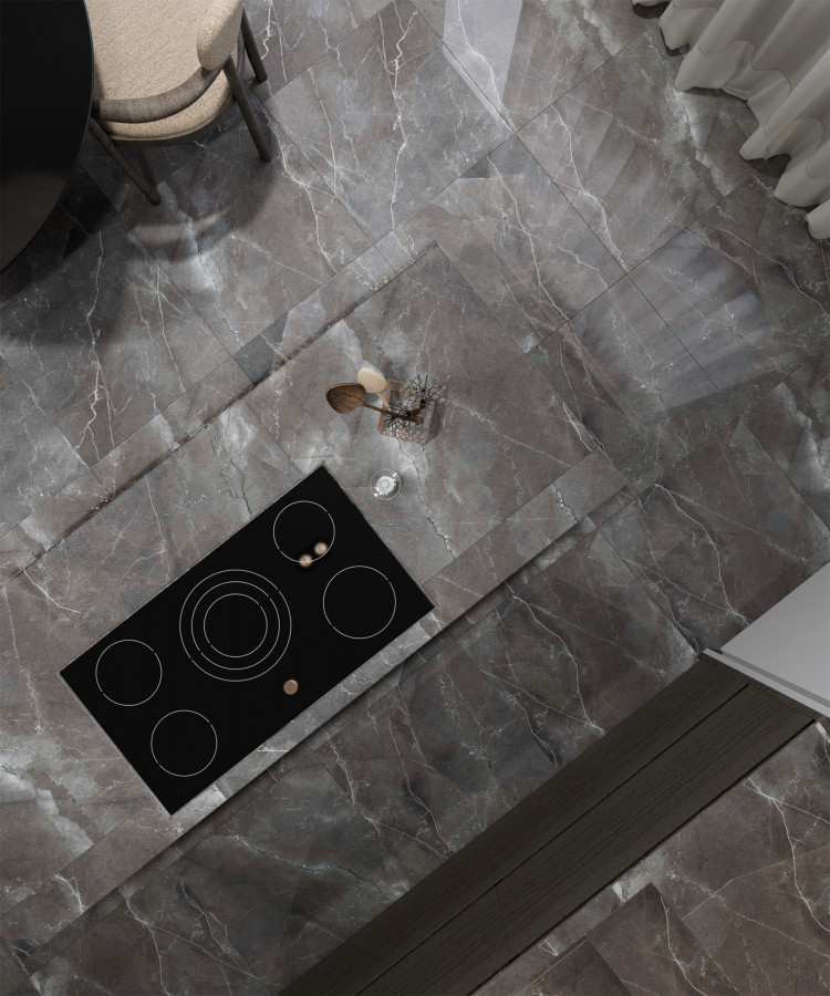 Керамогранит 60x60 8мм Pulpis Nero FP1014-A Full Polished полированная серый Arcadia Ceramica