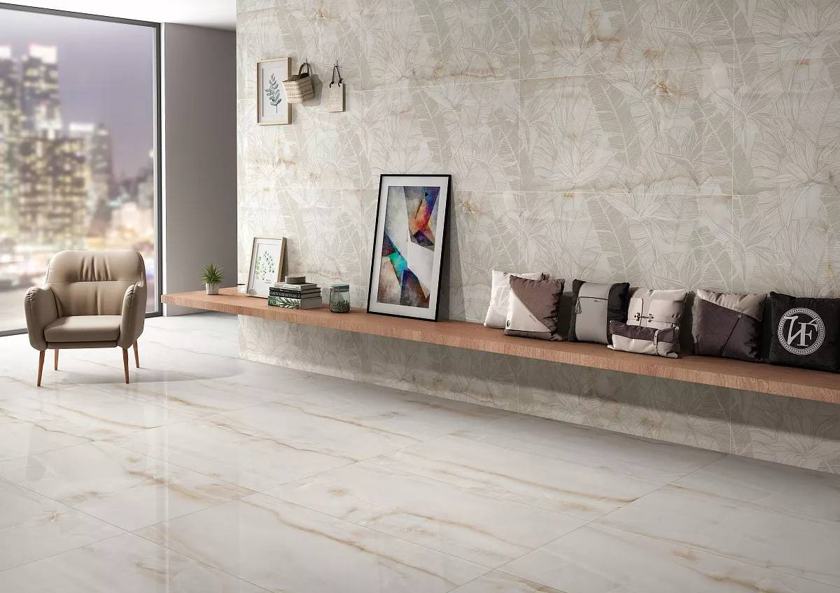 Керамогранит 120x60 11мм Rivanta Beige Decor Glossy глянцевая бежевый Art Ceramic