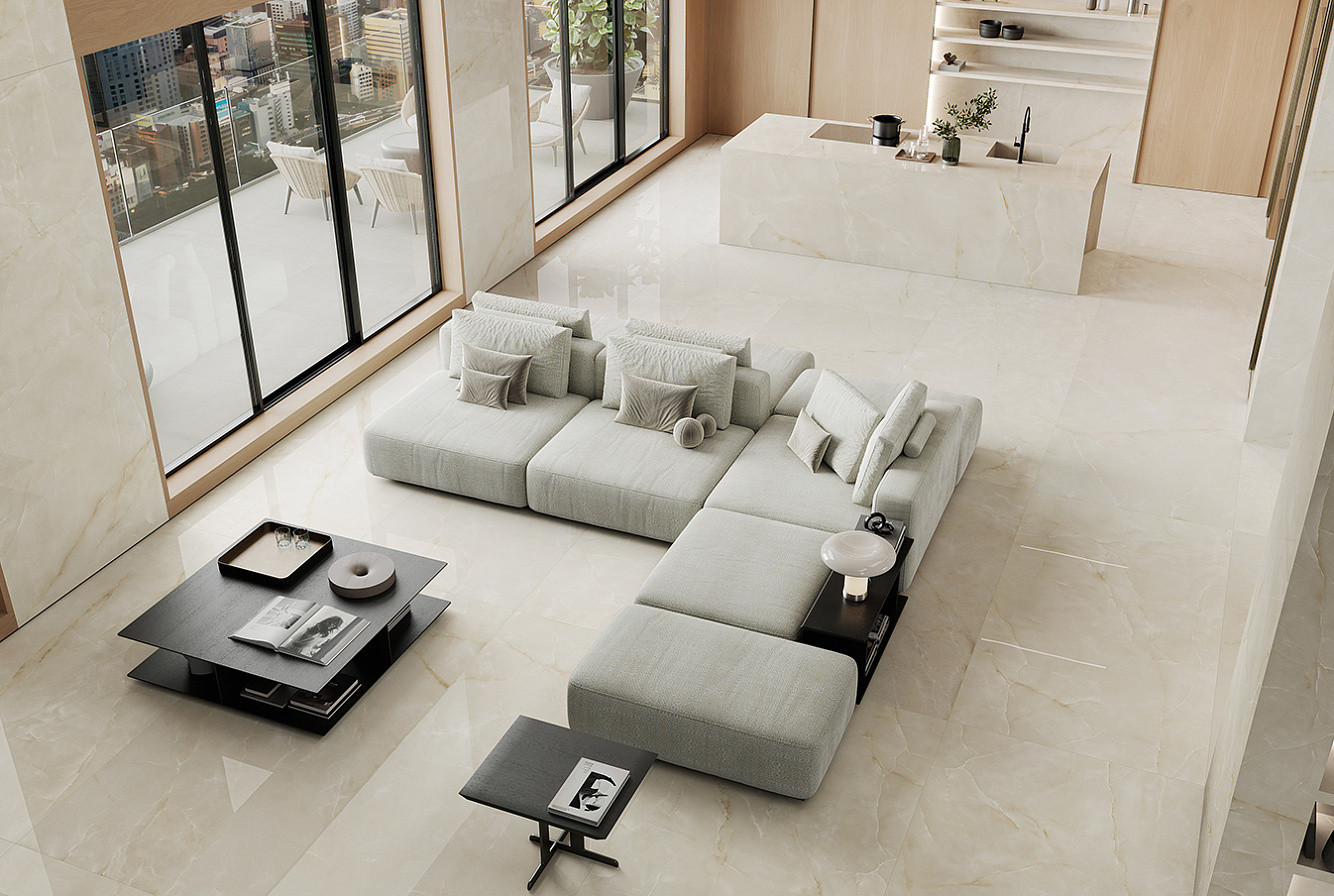 Керамогранит 120x120 9мм Marvel Onyx AJBL Alabaster Lapp лаппатированная бежевый Atlas Concorde
