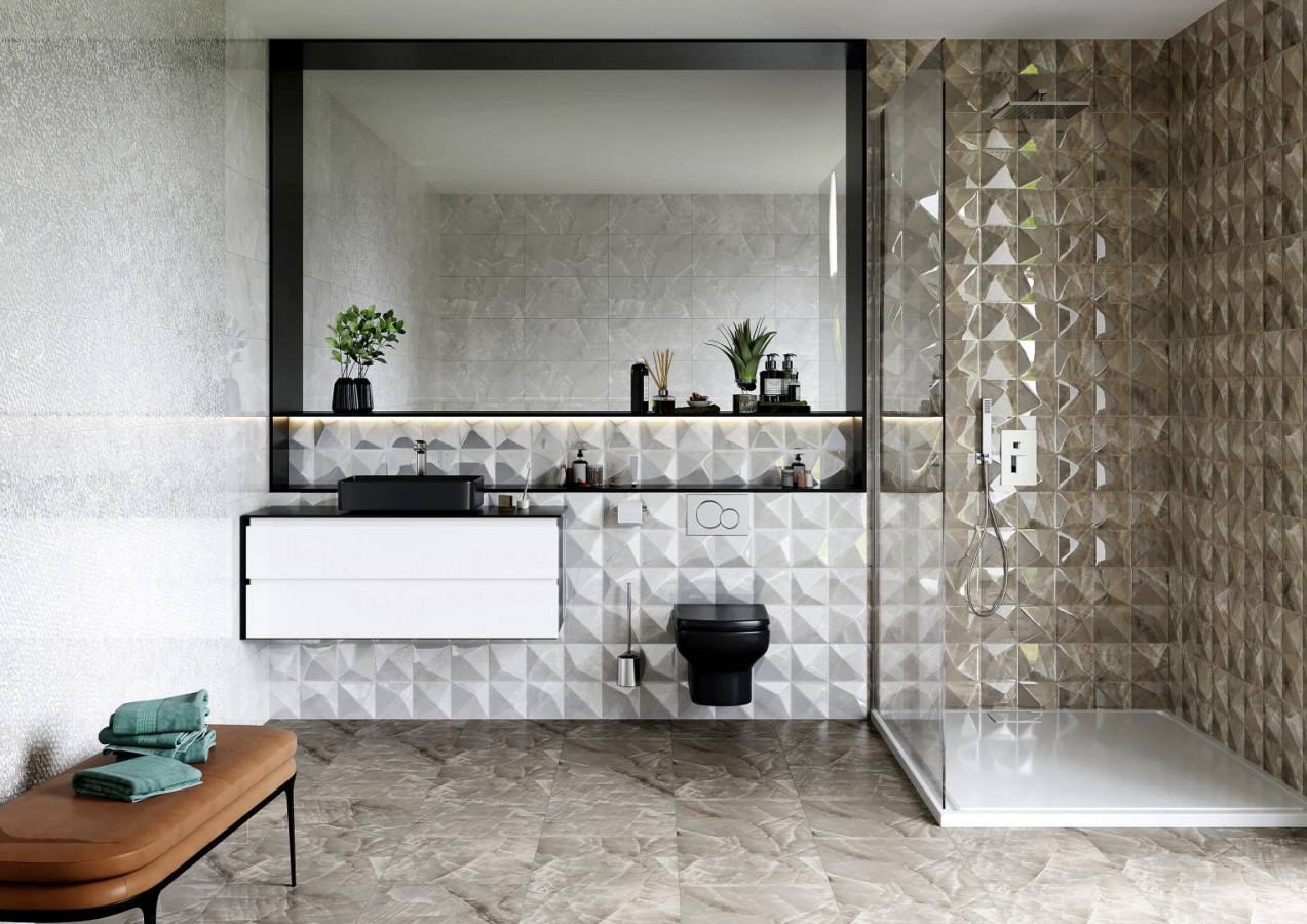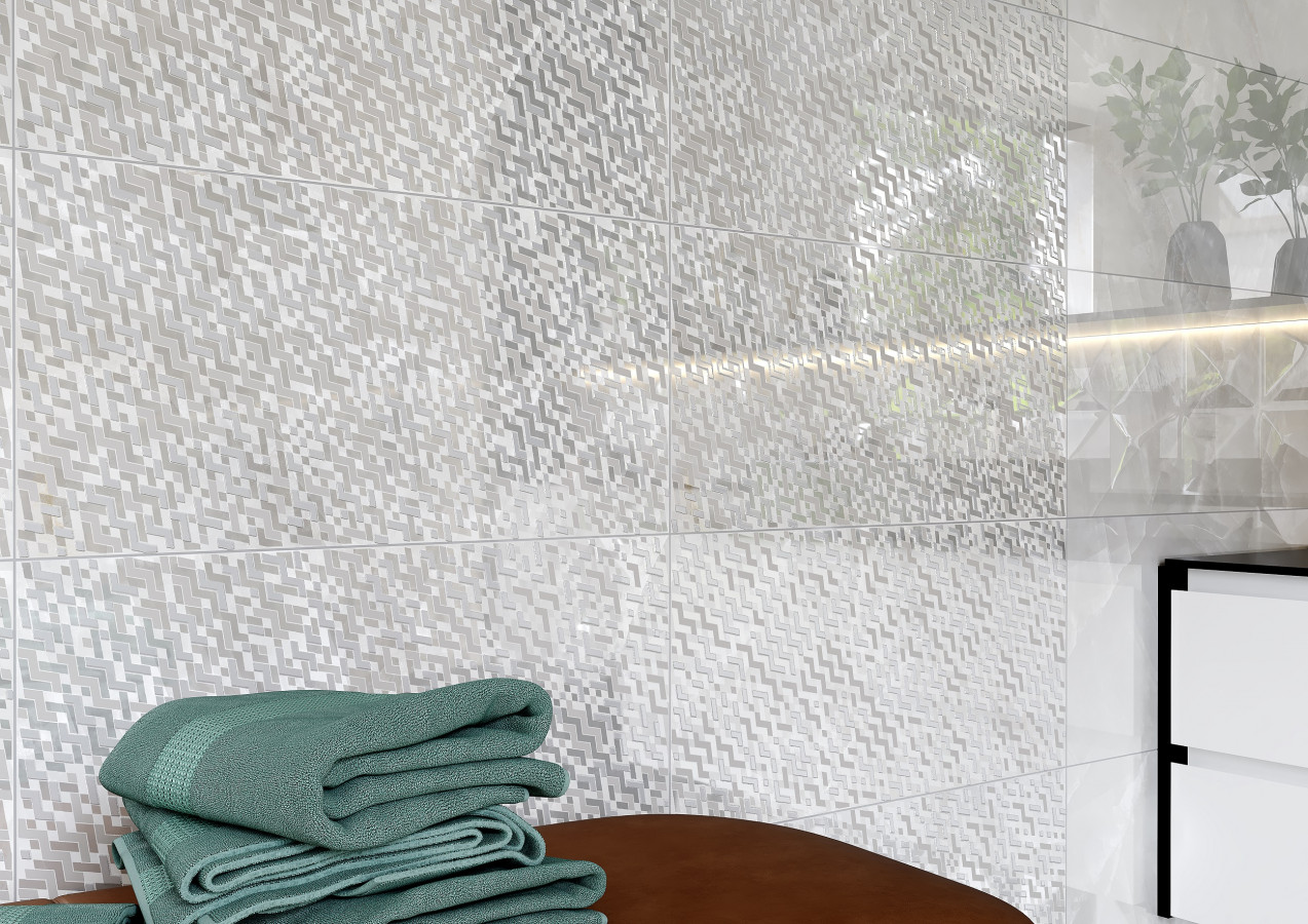 Керамическая плитка 60x30 9мм Нормандия Светлая Рельеф глянцевая серый Axima