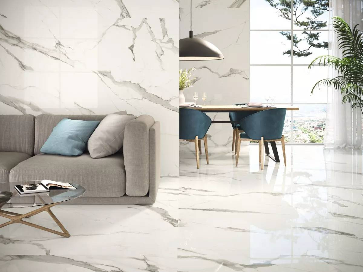 Керамогранит 120x60 9мм Statuario Natural Bthin матовая белый Baldocer