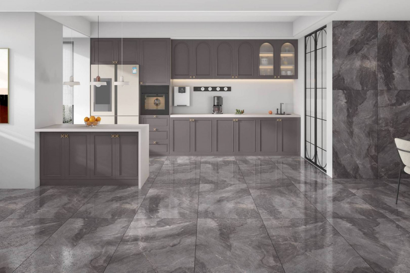 Керамогранит 120x60 9мм Dorato White Grenulla глянцевая серый Belleza