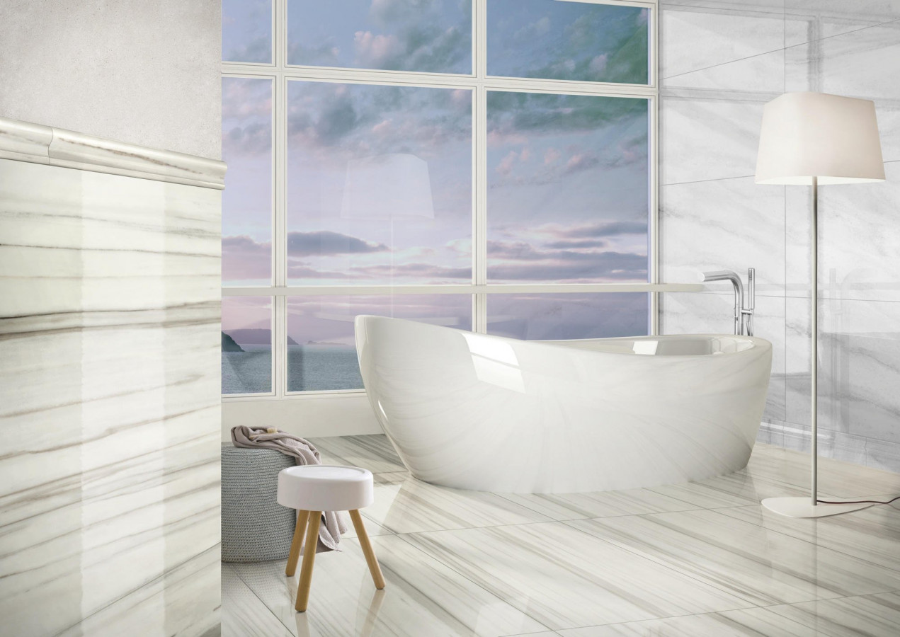Керамогранит 118x59 10мм Marmoker 2464623 Bardiglio Bianco Lucido глянцевая бежевый Casalgrande Padana