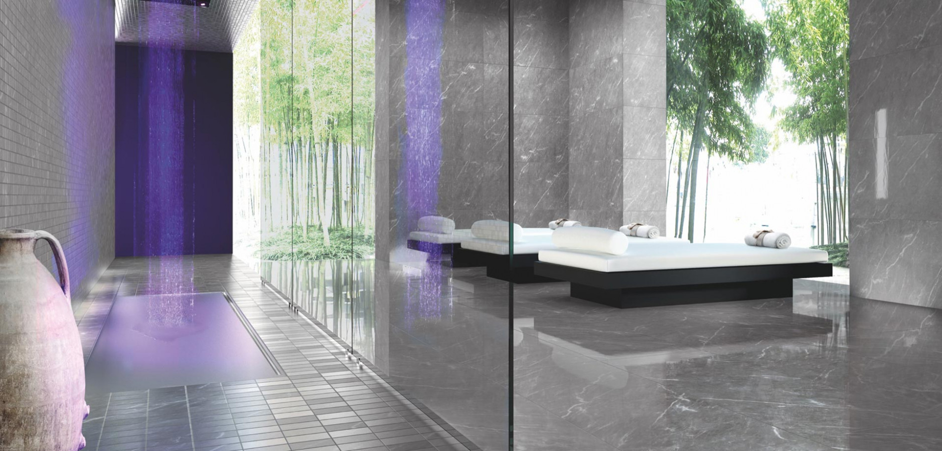 Керамогранит 118x59 10мм Marmoker 10460111 Travertino Titanium матовая серый Casalgrande Padana