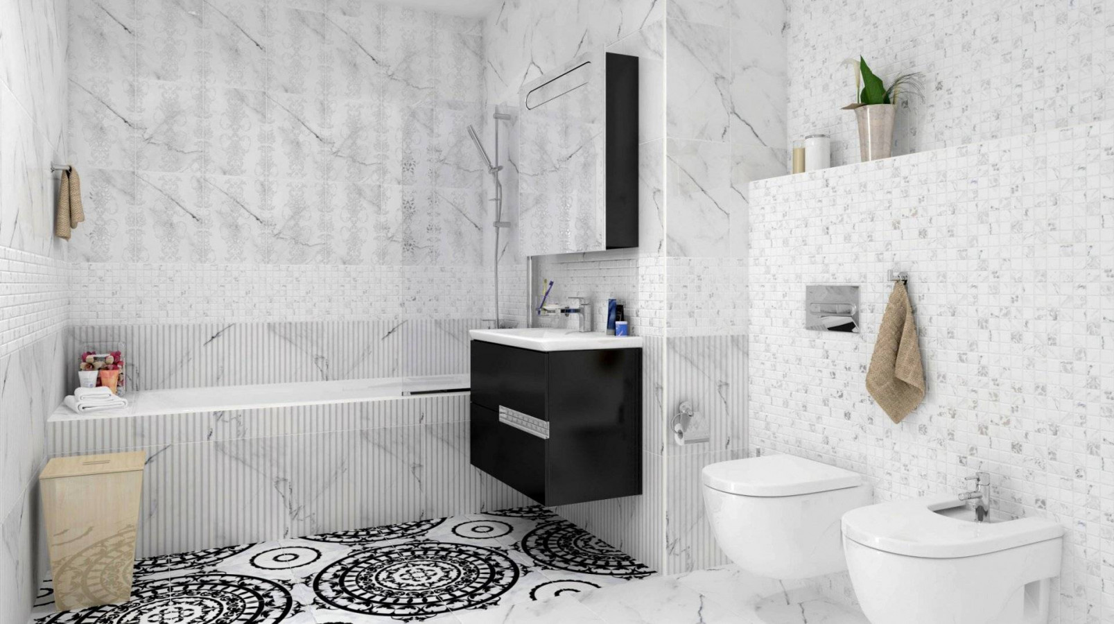 Вставка 42x42 8.5мм Oriental OE6R442DT Черно-Белый глянцевая белый Cersanit
