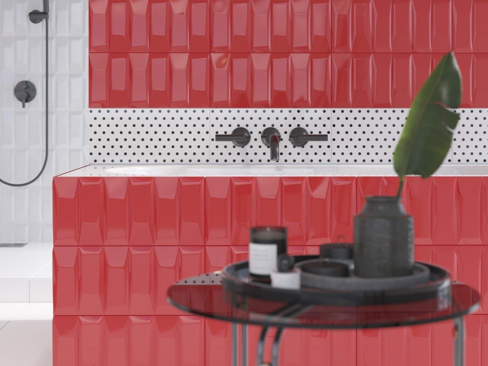 Керамическая плитка 44x20 9мм Evolution EVG413 Облицовочная Рельеф Кирпичи Красный глянцевая красный Cersanit