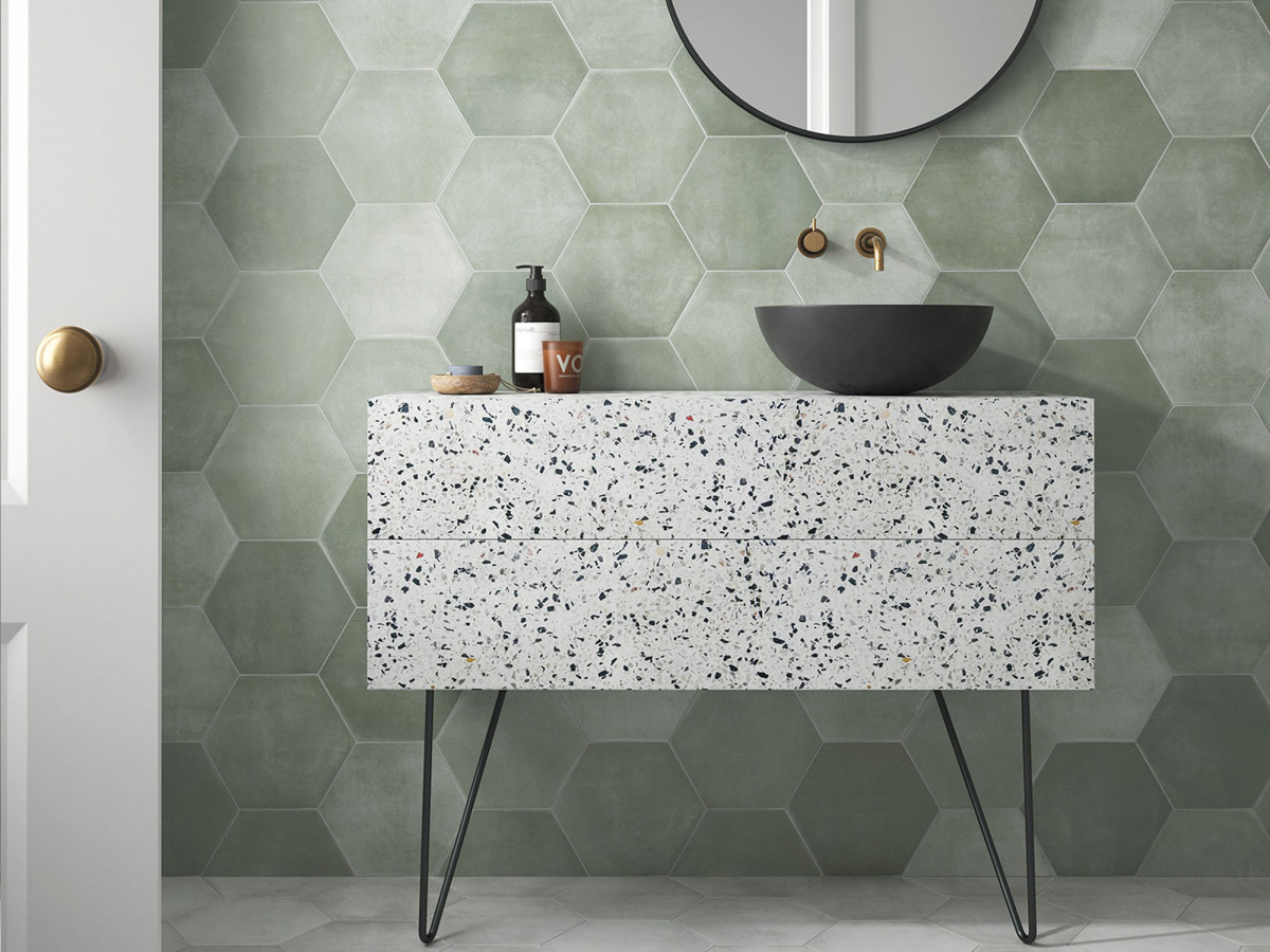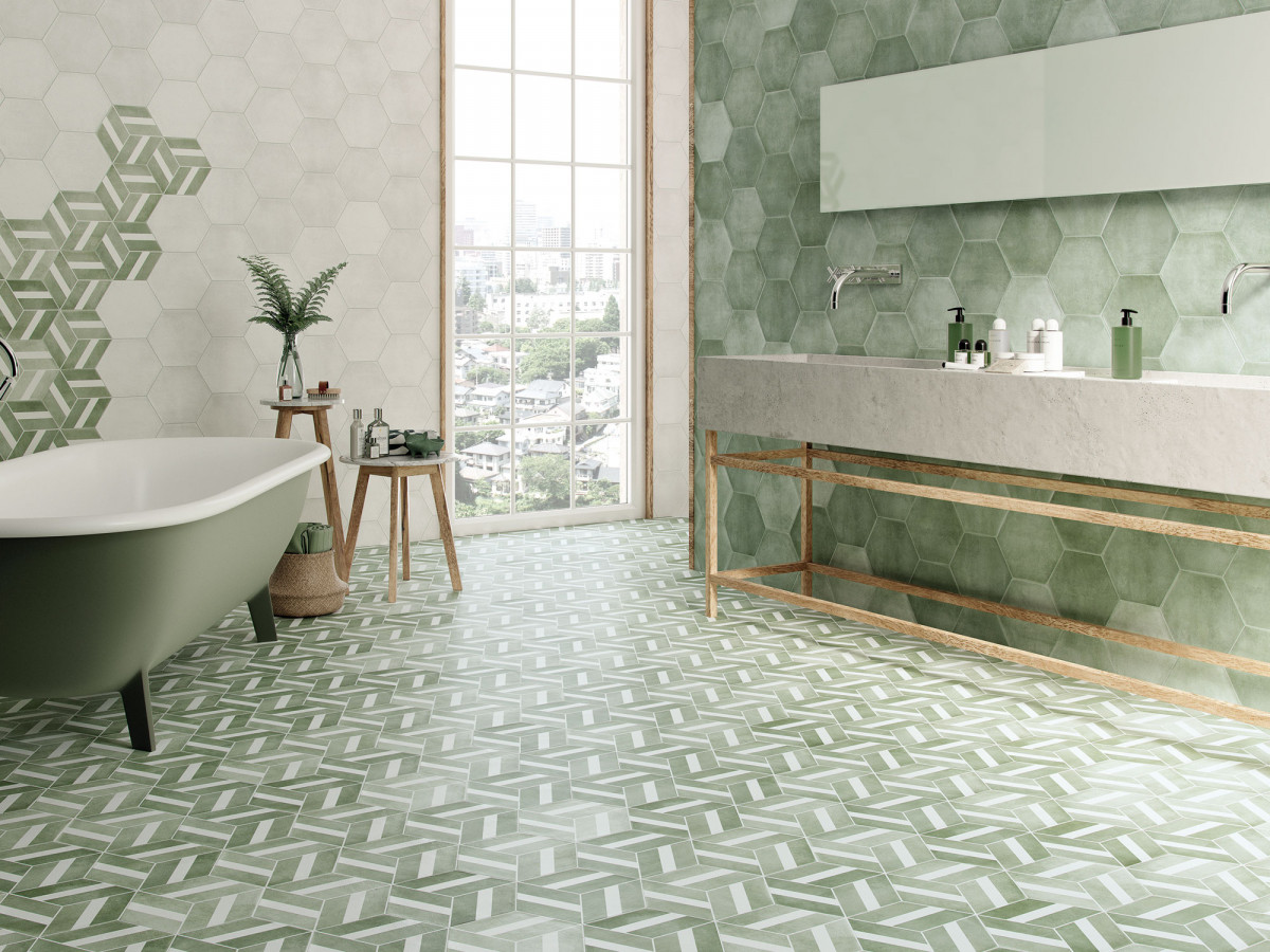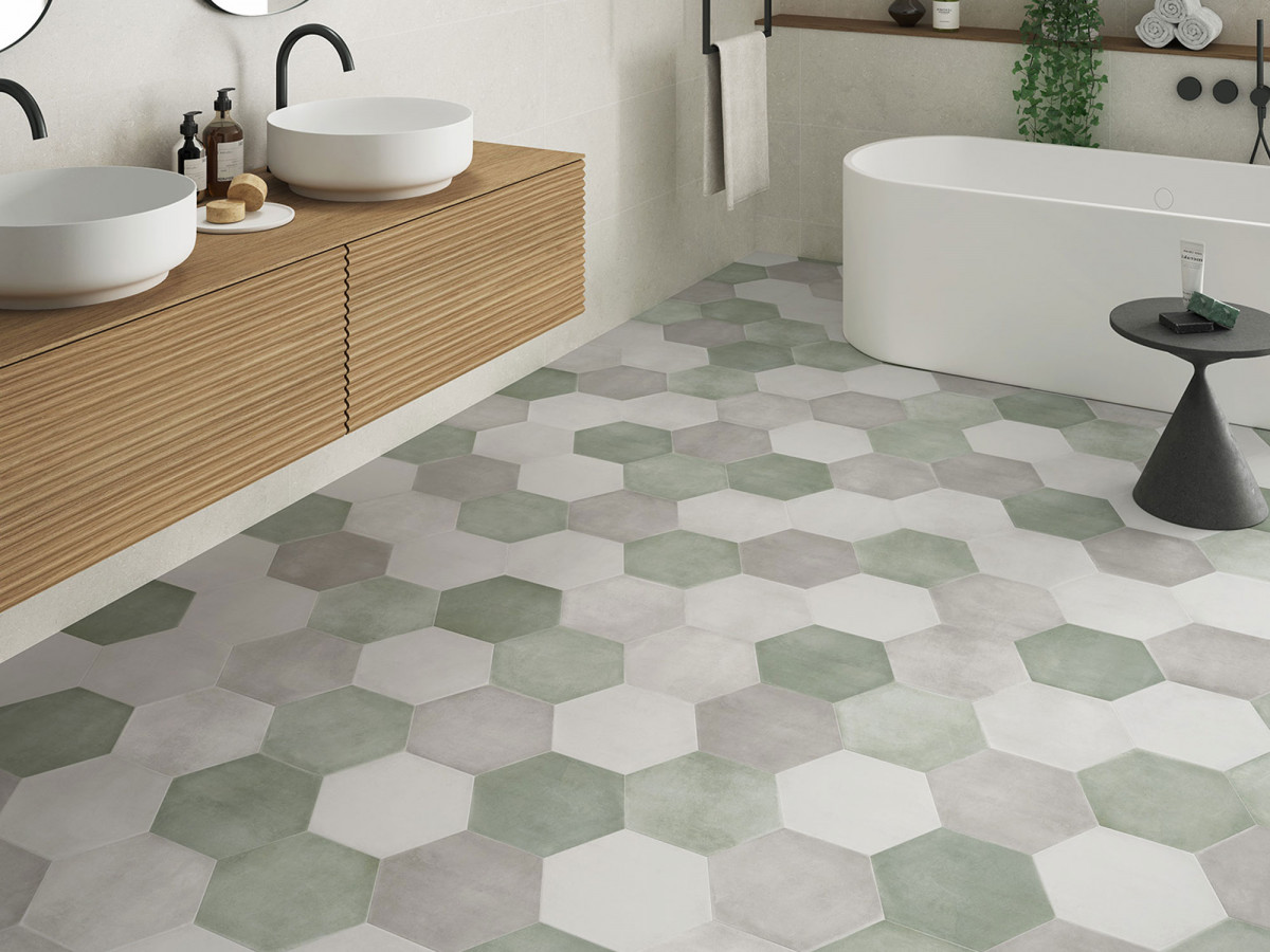 Керамогранит 27x23 9мм Six Cementine Bari Aqua матовая зеленый Durstone