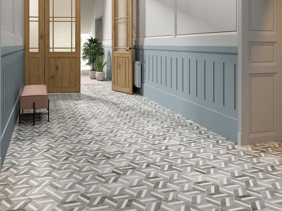 Керамогранит 27x23 9мм Six Cementine Capri Talc матовая серый Durstone