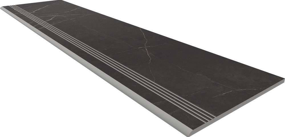 Ступень 120x33 10мм Nolana 70755 Set/Steptrade/NL04_NS/33x120/Riser/NL04_NS/14,5x120 Black неполированная с бортиком 33x120 + Подступенок матовая черный Estima