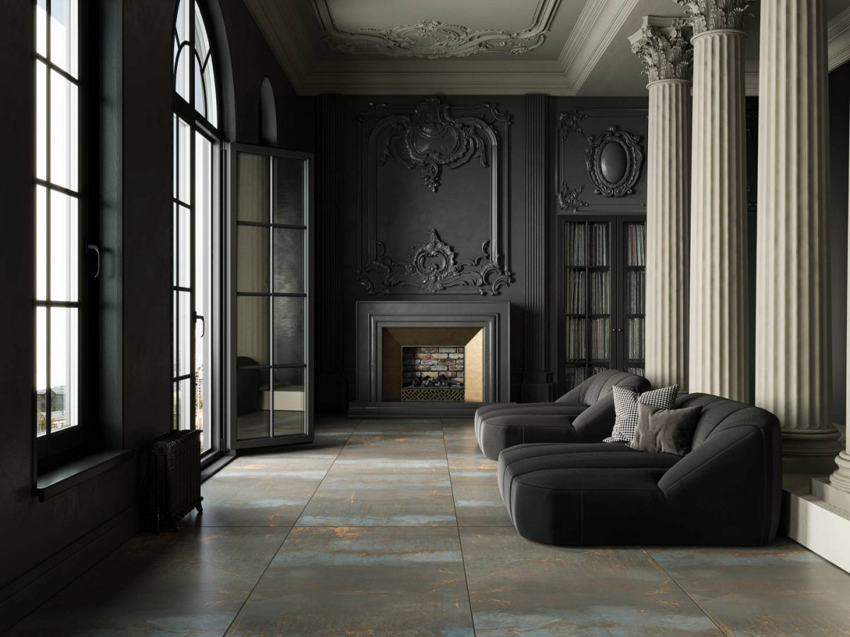 Керамогранит 120x60 10мм Patina 71686 TP02/NS_R9/60x120x10R/GC Black Неполированный матовая черный Estima