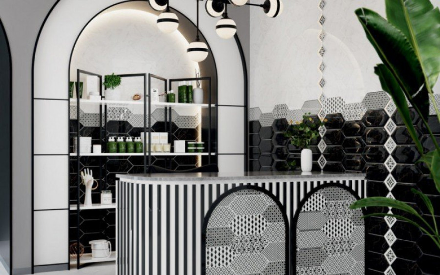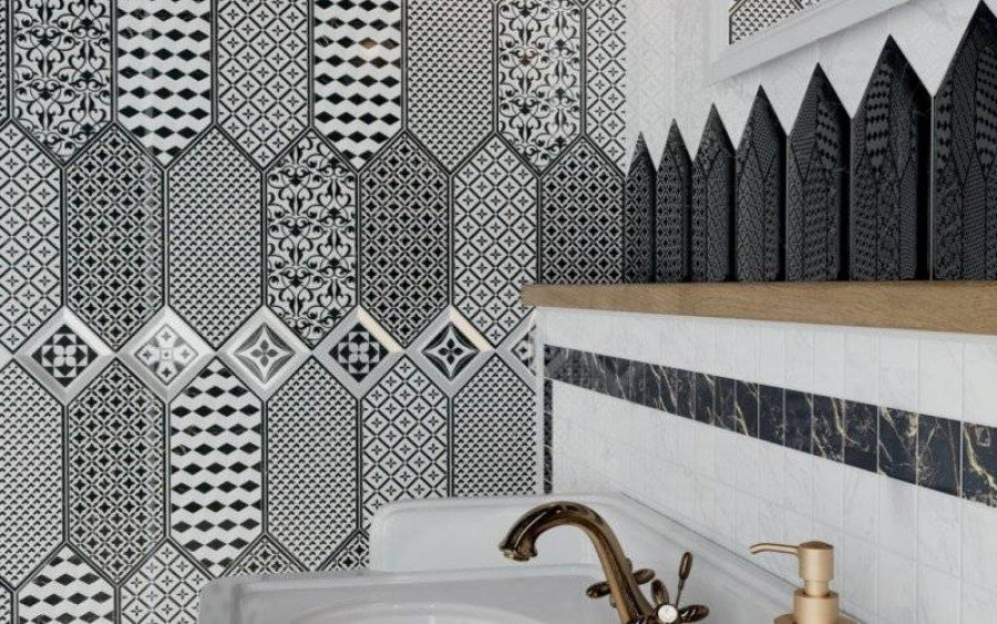 Декор 10x10 6.9мм Келуш TOC005 2 Грань Черно-Белый глянцевая белый Kerama Marazzi