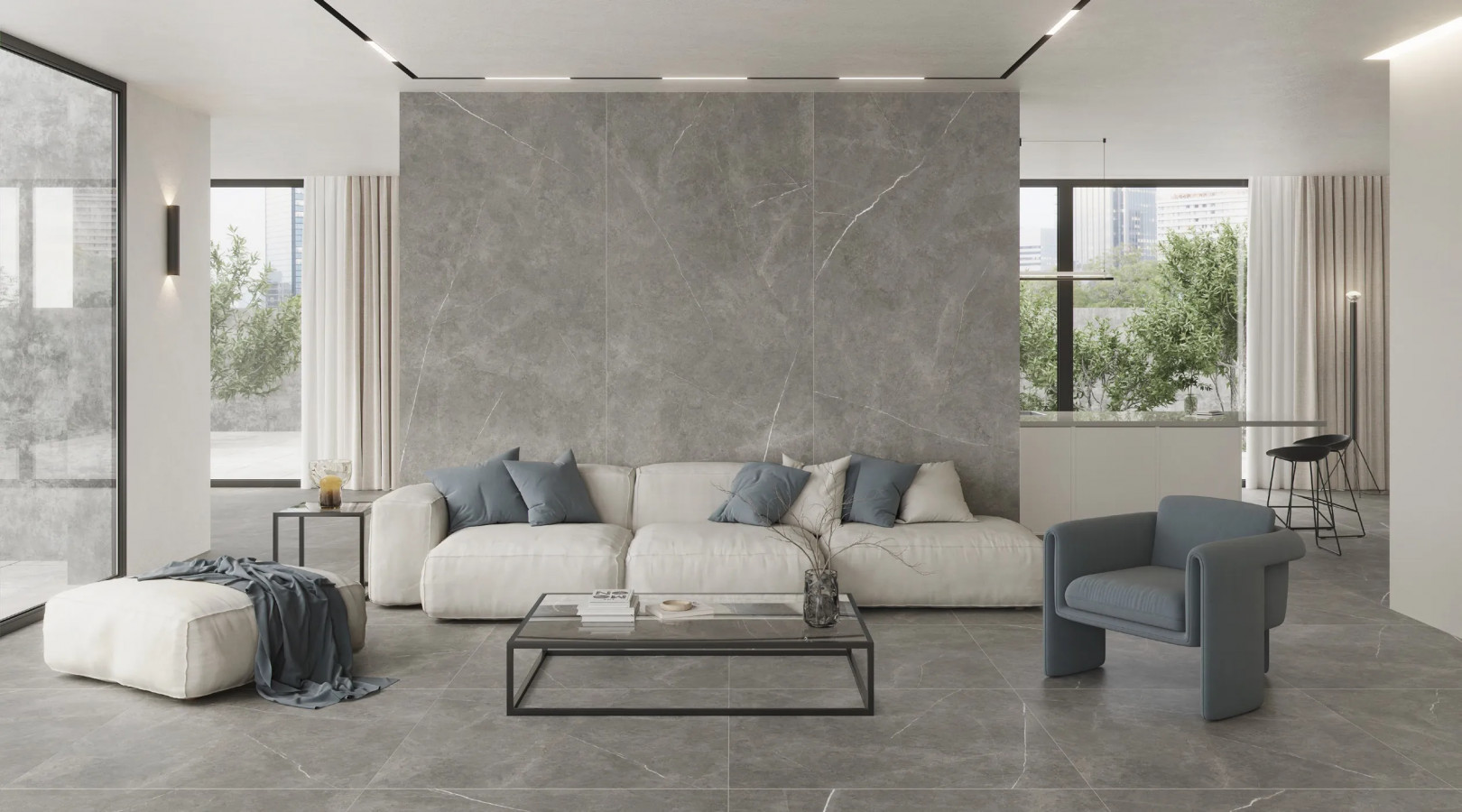 Керамогранит 119x59 10мм Northon CAS1NORODPHA Grey Pul Rect. глянцевая серый Keratile
