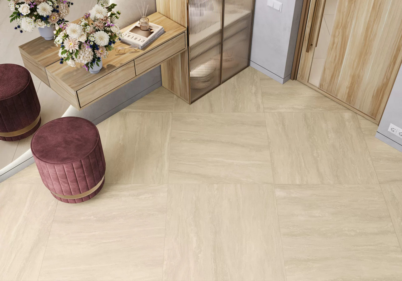 Керамогранит 80x80 8мм Tivoli 8080TIV11M Romano Матовый Карвинг матовая бежевый LCM