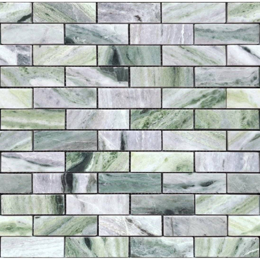 Мозаика 32x28 7мм Pietrine 7 Onice Verde Oliva Pol Fish (2.3x7.3) полированная зеленый LeeDo