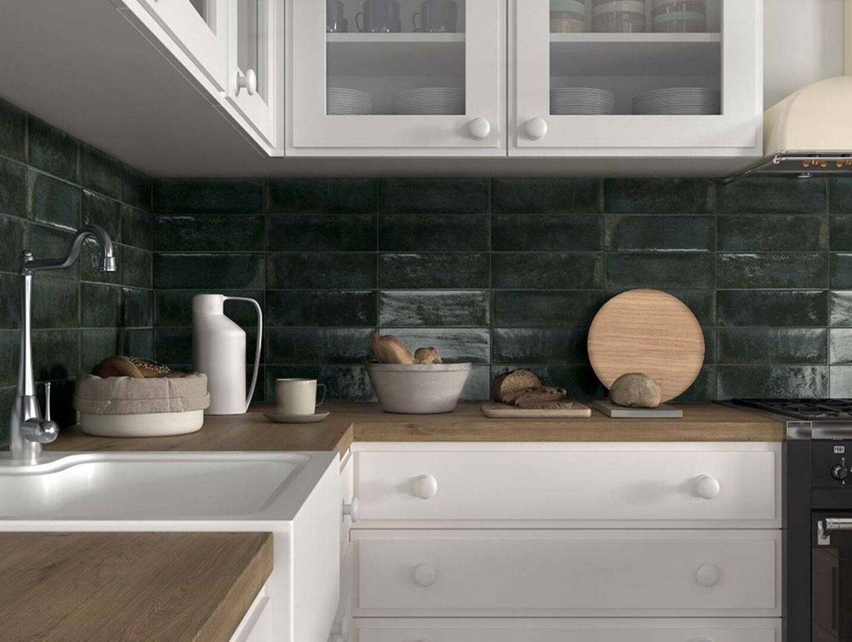 Керамическая плитка 30x10 7.8мм Village Evergreen глянцевая зеленый Mainzu