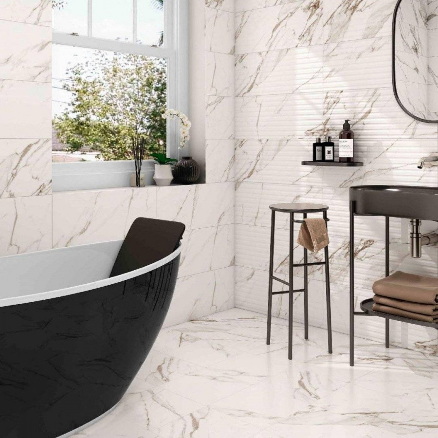 Керамическая плитка 32x32 9мм Berlin Calacatta Negro глянцевая белый Mayolica Ceramica