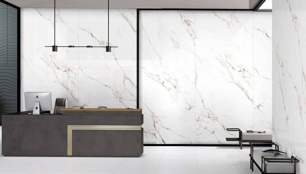 Керамогранит 278x120 6мм Statuario Castork Glossy глянцевая белый Ocean ceramic