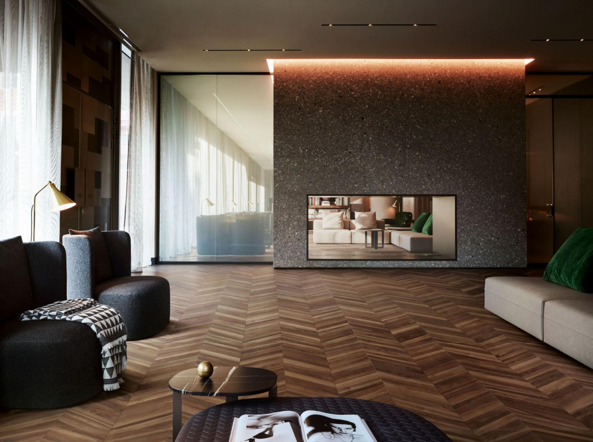 Керамогранит 120x60 8.5мм Fleur De Bois 03024B Chevron Miel Nat Ret матовая бежевый Piemme Valentino