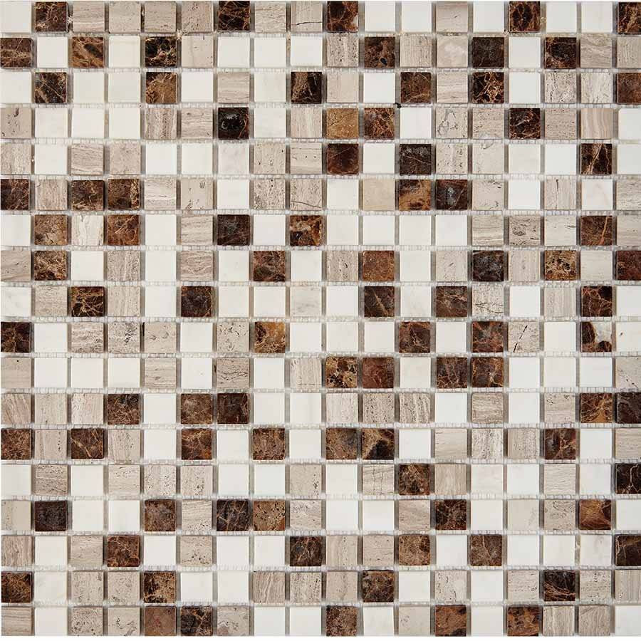 Мозаика 31x31 6мм Мрамор PIX319 Cream Nova Dark Emperador Light Emperador Матовая матовая белый Pixel Mosaic
