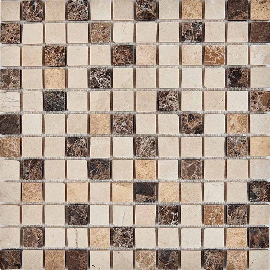 Мозаика 31x31 6мм Мрамор PIX319 Cream Nova Dark Emperador Light Emperador Матовая матовая белый Pixel Mosaic
