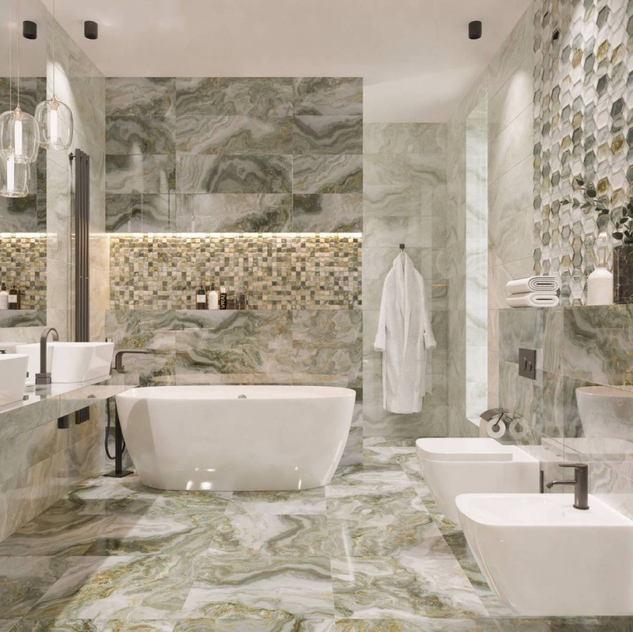 Керамогранит 60x60 8.5мм Hypnose GR115 Malachite high glossy глянцевая зеленый Primavera