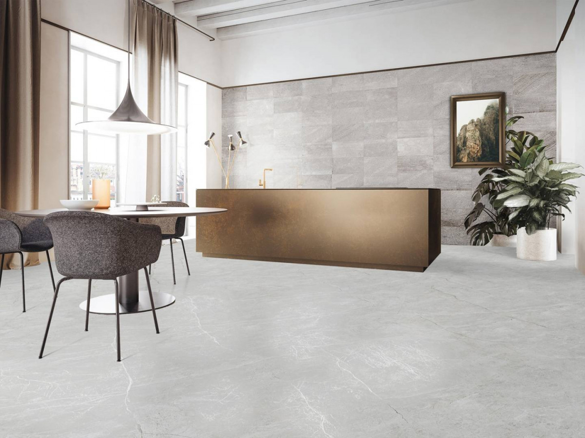 Керамогранит 160x80 9мм Grizli Ice Endless Carving матовая серый Realistik