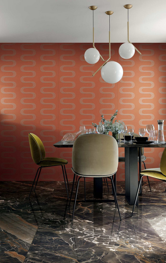 Керамогранит 280x120 6мм Les Bijoux De Rex 765703 Quatre Saisons Glossy R полированная черный Rex Ceramiche