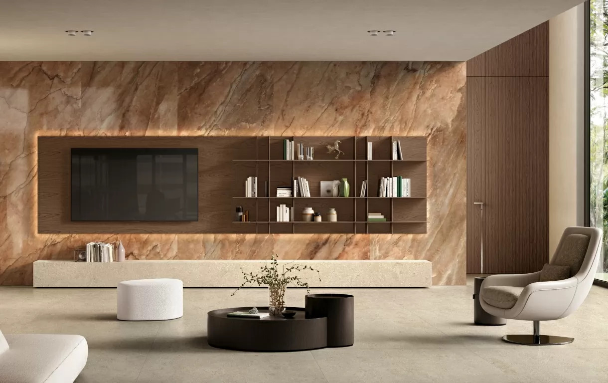 Керамогранит 280x120 6мм Authentic Luxe 781181 Lux Marble Nuage Gl глянцевая коричневый Rex Ceramiche