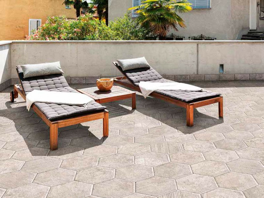 Керамогранит 28x24 8мм New Orleans 1047168 Esagona Royal Street матовая серый Serenissima Cir