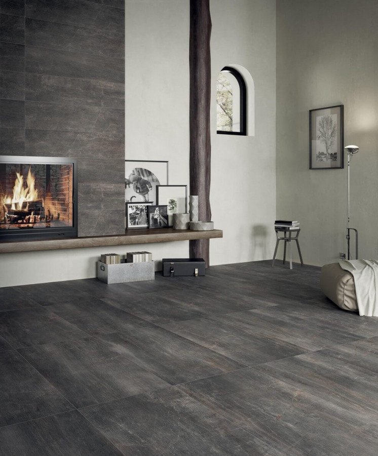 Керамогранит 120x30 10мм Fossil 1067946 Lines Piombo Ret матовая черный Serenissima Cir