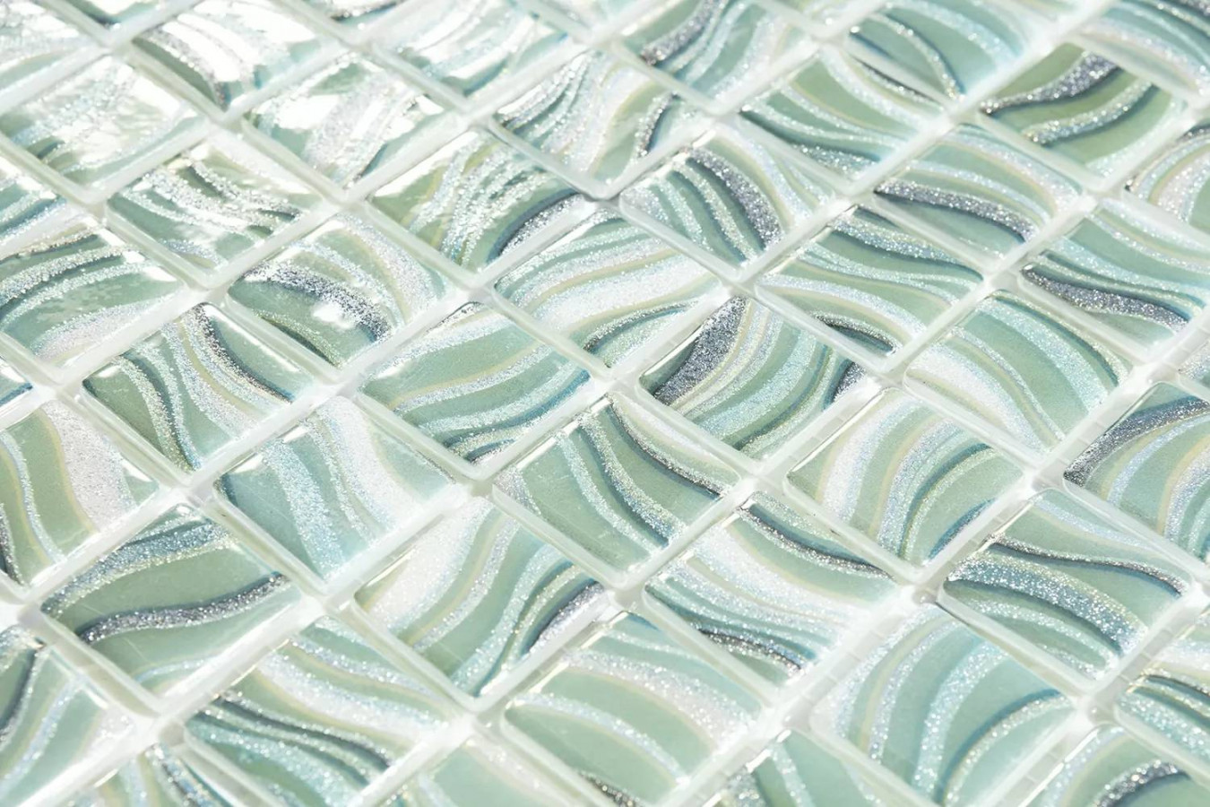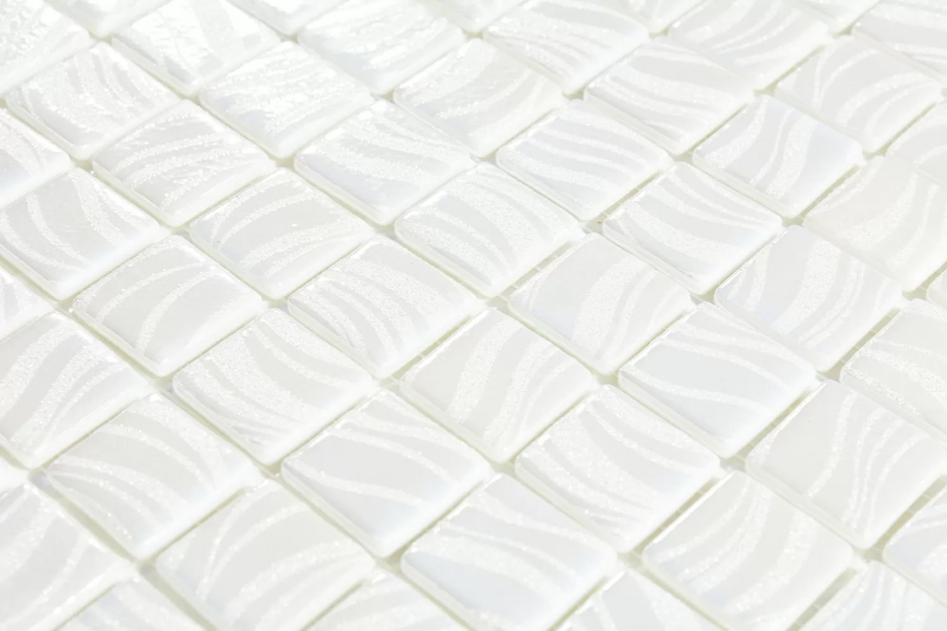 Мозаика 32x32 4мм Glitter White 7802 (на сетке) (2.5x2.5) глянцевая белый Vidrepur