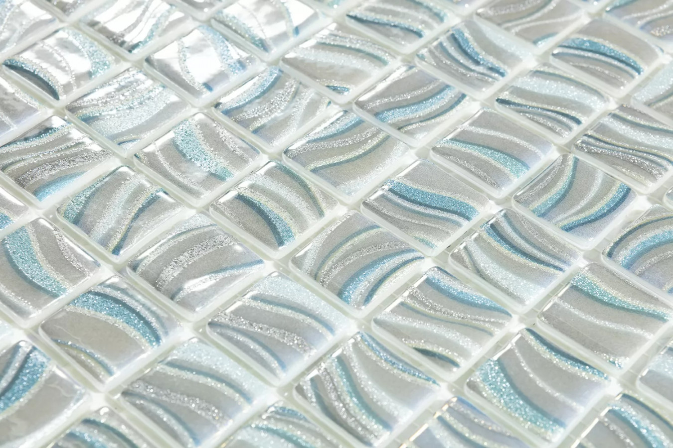 Мозаика 32x32 4мм Glitter Grey 7804 (на сетке) (2.5x2.5) глянцевая серый Vidrepur
