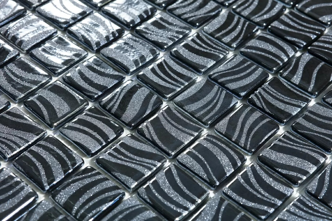 Мозаика 32x32 4мм Glitter Black 7803 (на сетке) (2.5x2.5) глянцевая черный Vidrepur