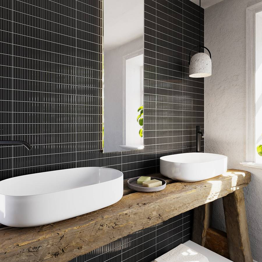 Керамическая плитка 30x5 8.4мм Tokyo Black Brillo глянцевая черный Vilar Albaro