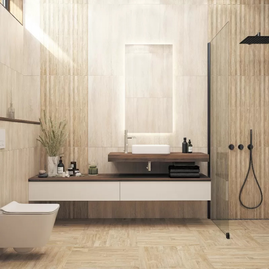 Керамическая плитка 90x30 10мм Бунгало 4Д Темно-Бежевый матовая коричневый Керамин