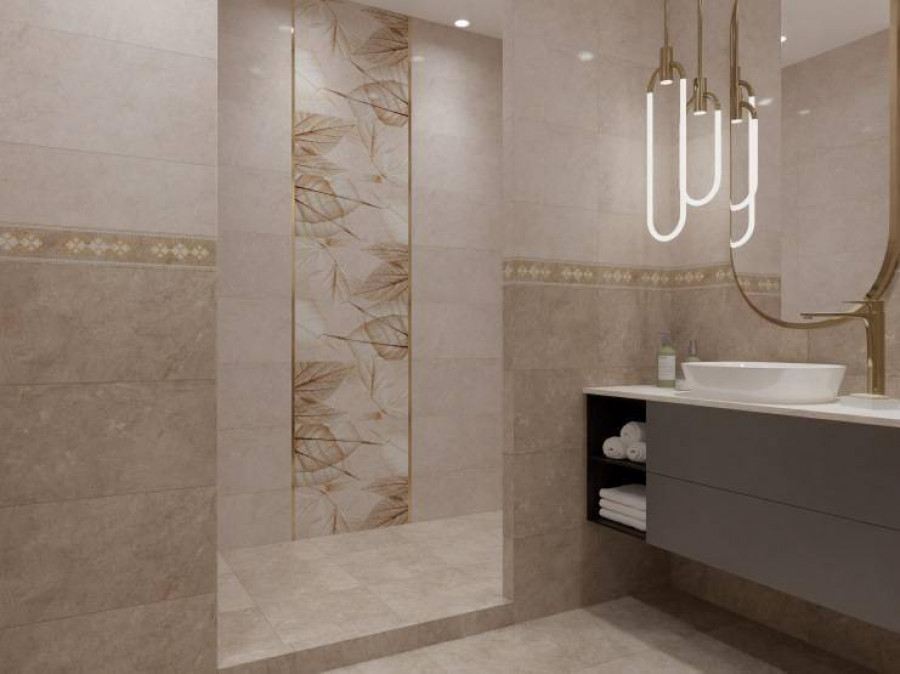 Декор 60x30 8.5мм Ирида TP3688F2 Листья 2 Ректификат глянцевая бежевый Тянь-Шань