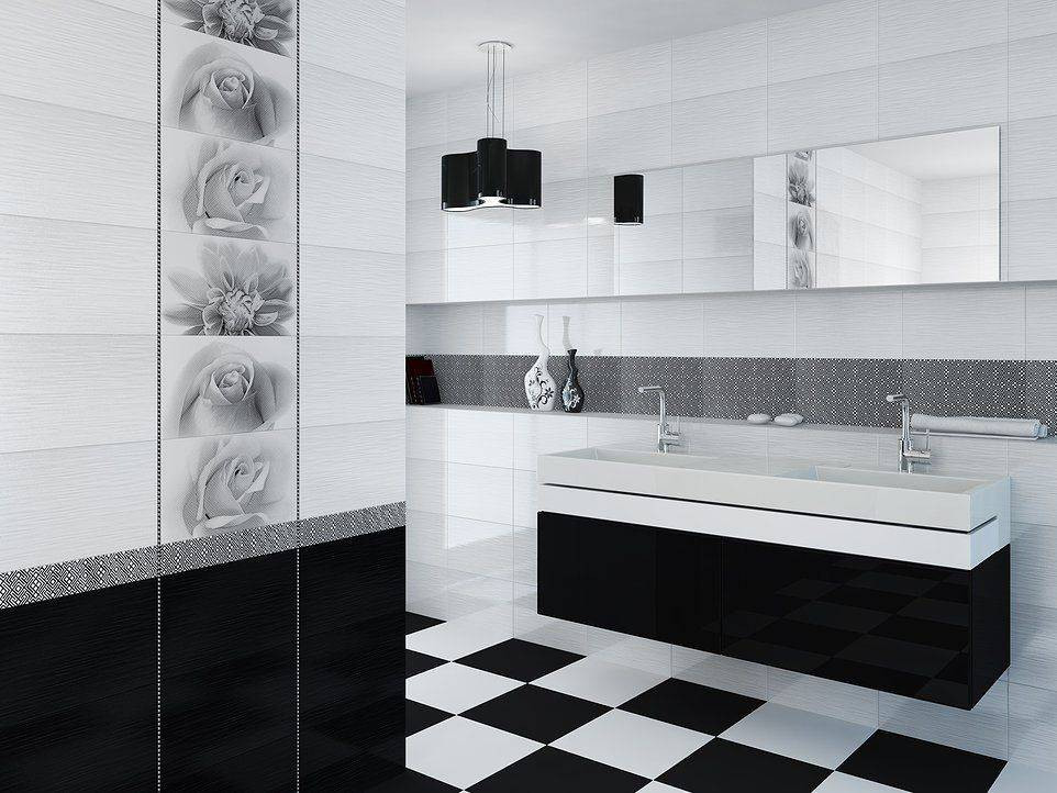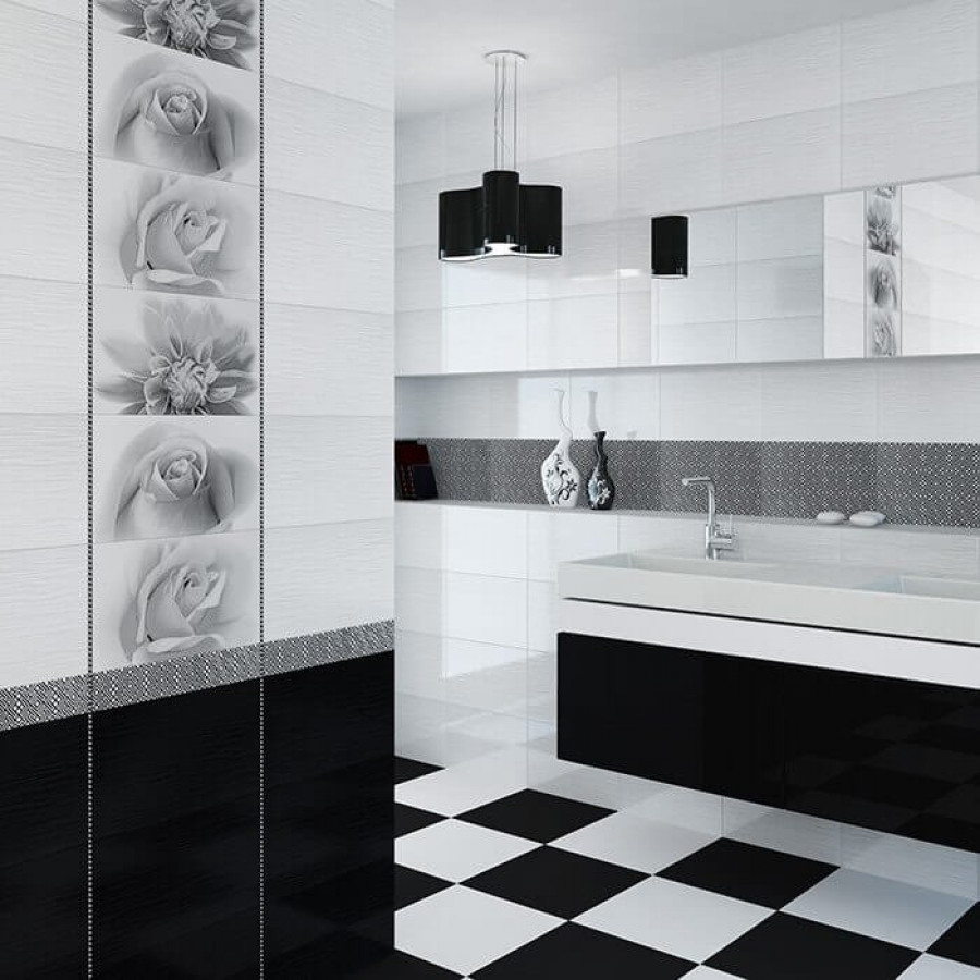 Декор 40x25 9мм Камелия 10301001884 Черн 01 глянцевая белый Шахтинская плитка